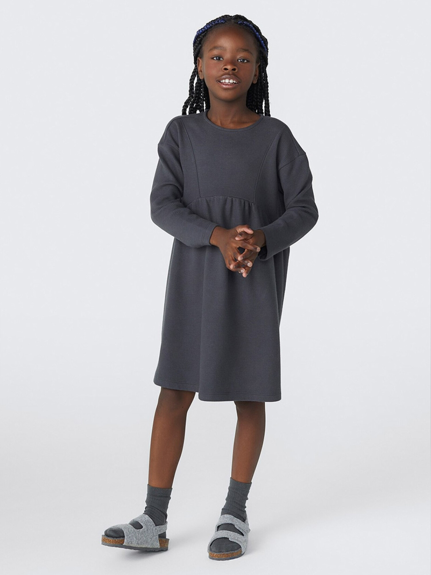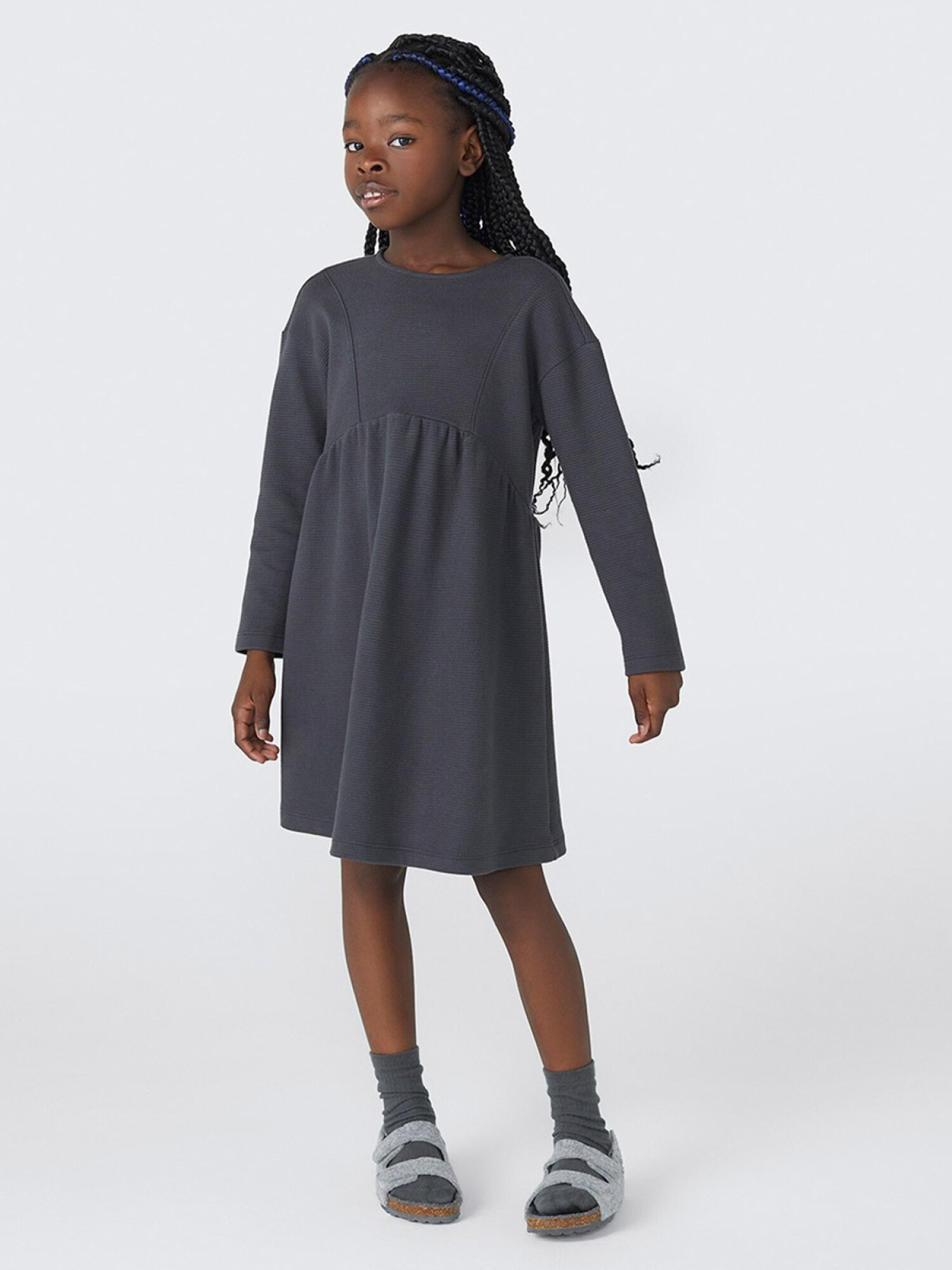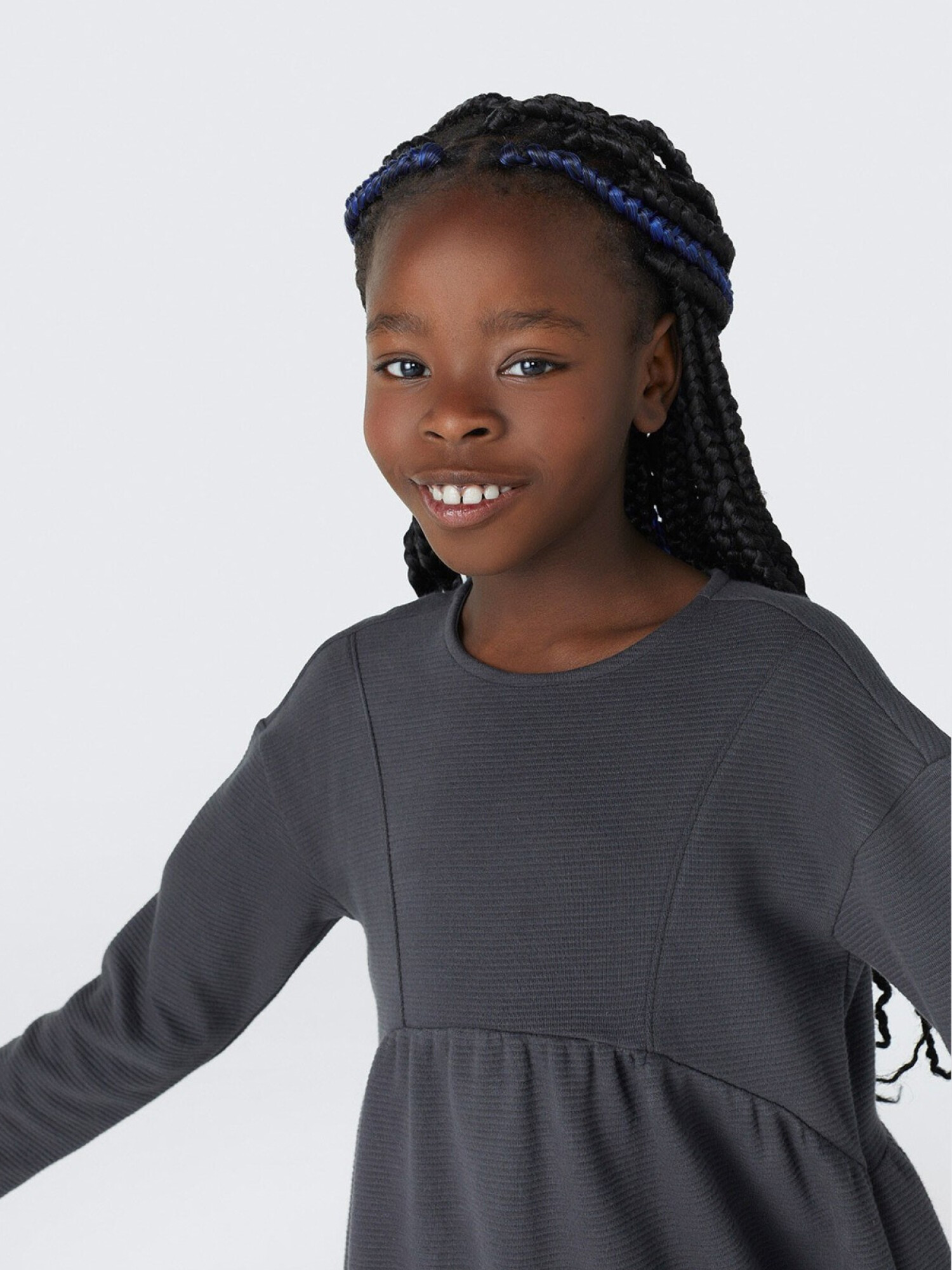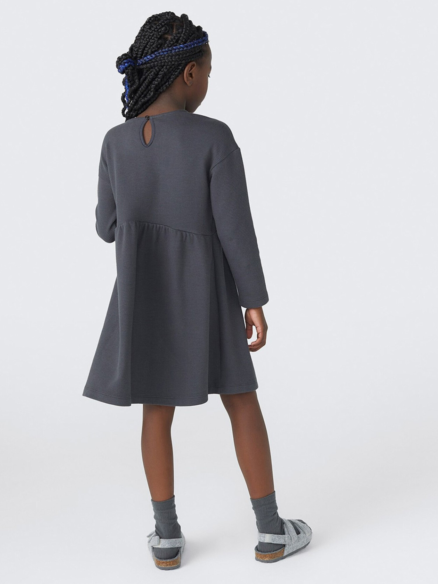 VESTIDO INFANTIL CON TELA ACANALADA - GRIS OSCURO