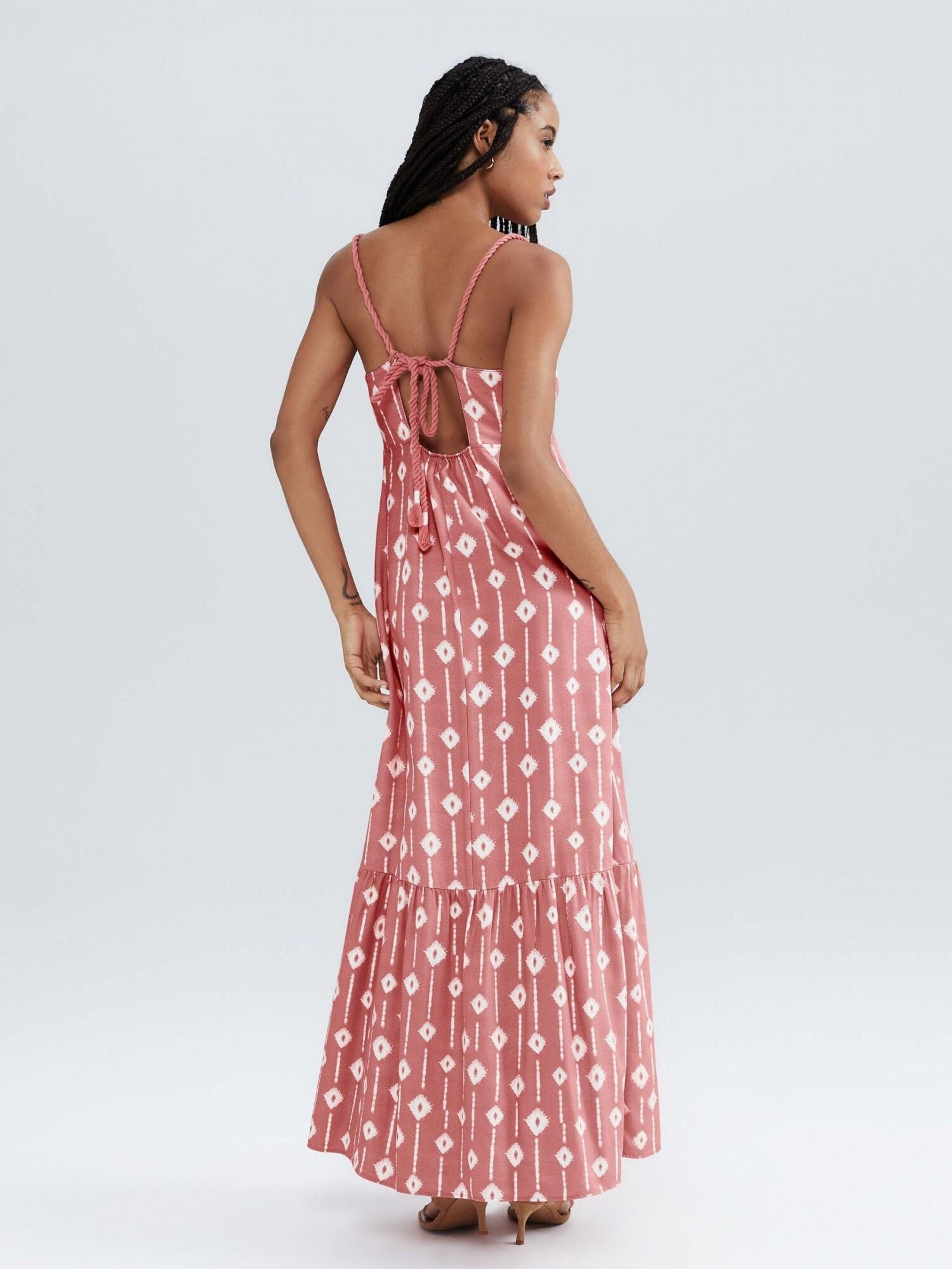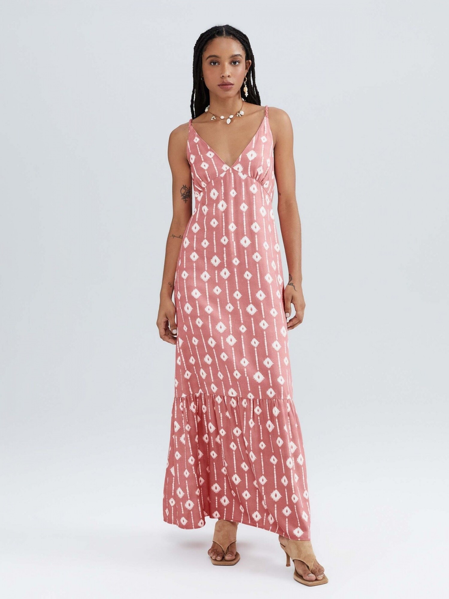 VESTIDO LARGO CON ESCOTE EN V - ROSADO